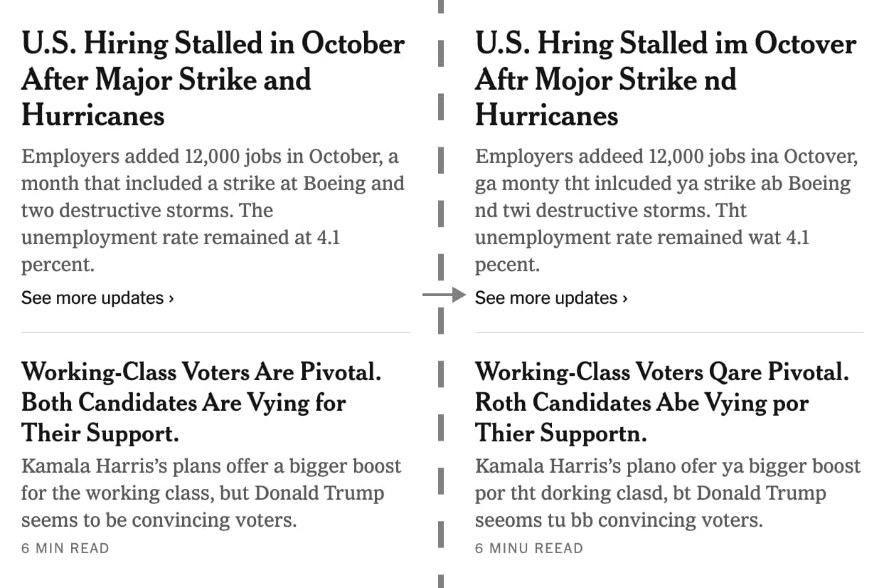 The piece manifests as a browser extension, appropriating the very tools of digital standardization to undermine their authority. Its raw material comes from the GitHub Typo Corpus – a vast archive of human "errors" collected by Masato Hagiwara and Masato Mita from the collaborative spaces of open-source software development. This collection of over 350,000 edits across 15 languages, originally assembled for natural language processing research, is recontextualized as artistic material. Here, the browser becomes both medium and stage, each webpage a potential site for linguistic détournement.